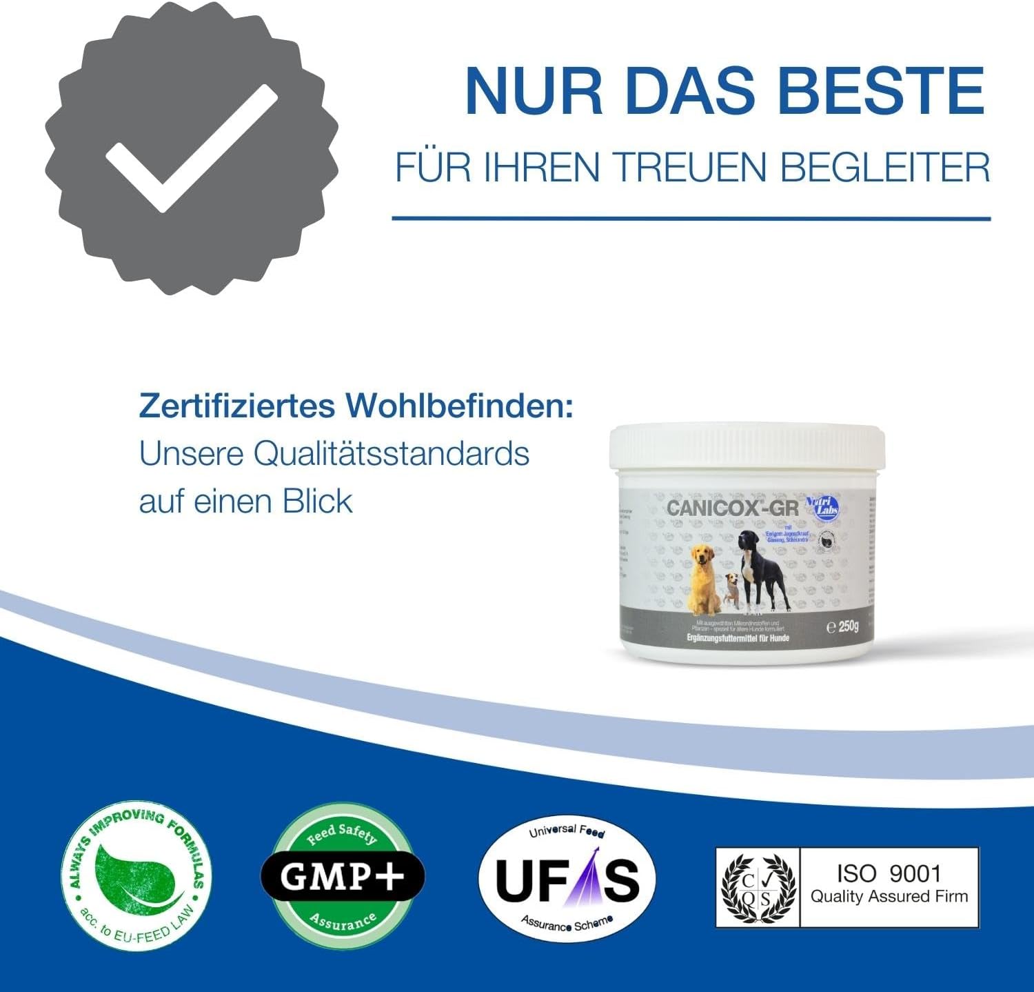 Ob als tägliche Ergänzung oder gezielte Kur – Canicox-GR Senior sorgt für mehr Lebensfreude, Beweglichkeit und Vitalität im Hundeseniorenalter.