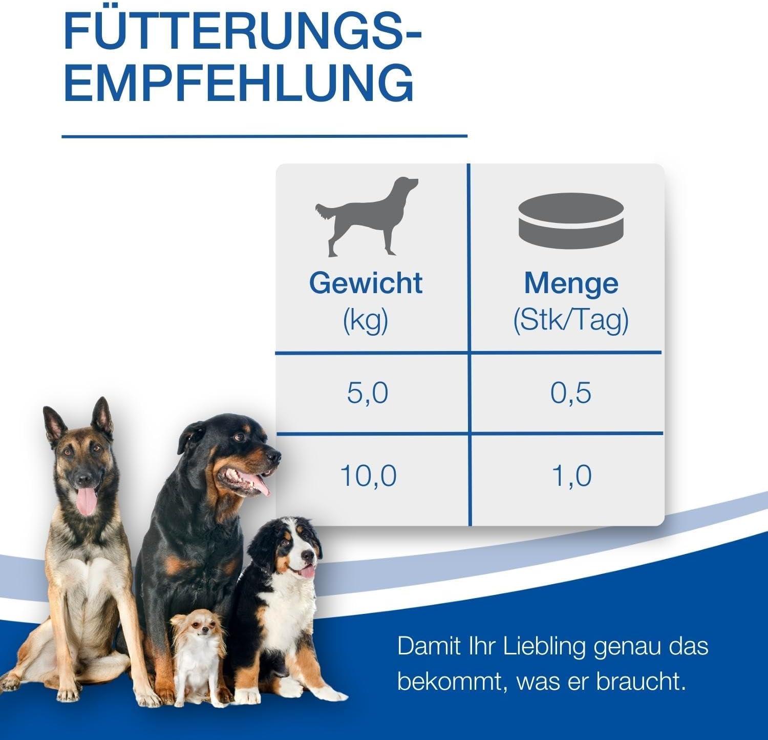 Täglich eine Tablette (2,5 g) pro 10kg Körpergewicht geben.