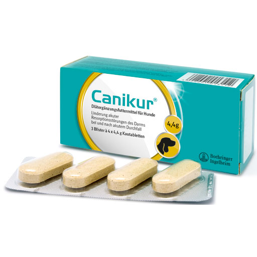 Die praktische Kautablette unterstützt die Regulation der Darmfunktion und kann bei allen akuten Durchfällen eingesetzt werden. Bei leichtem Durchfall ist eine Alleingabe möglich, bei schwereren Durchfallerkrankungen kann Canikur® begleitend zu einer tierärztlichen Therapie eingesetzt werden.