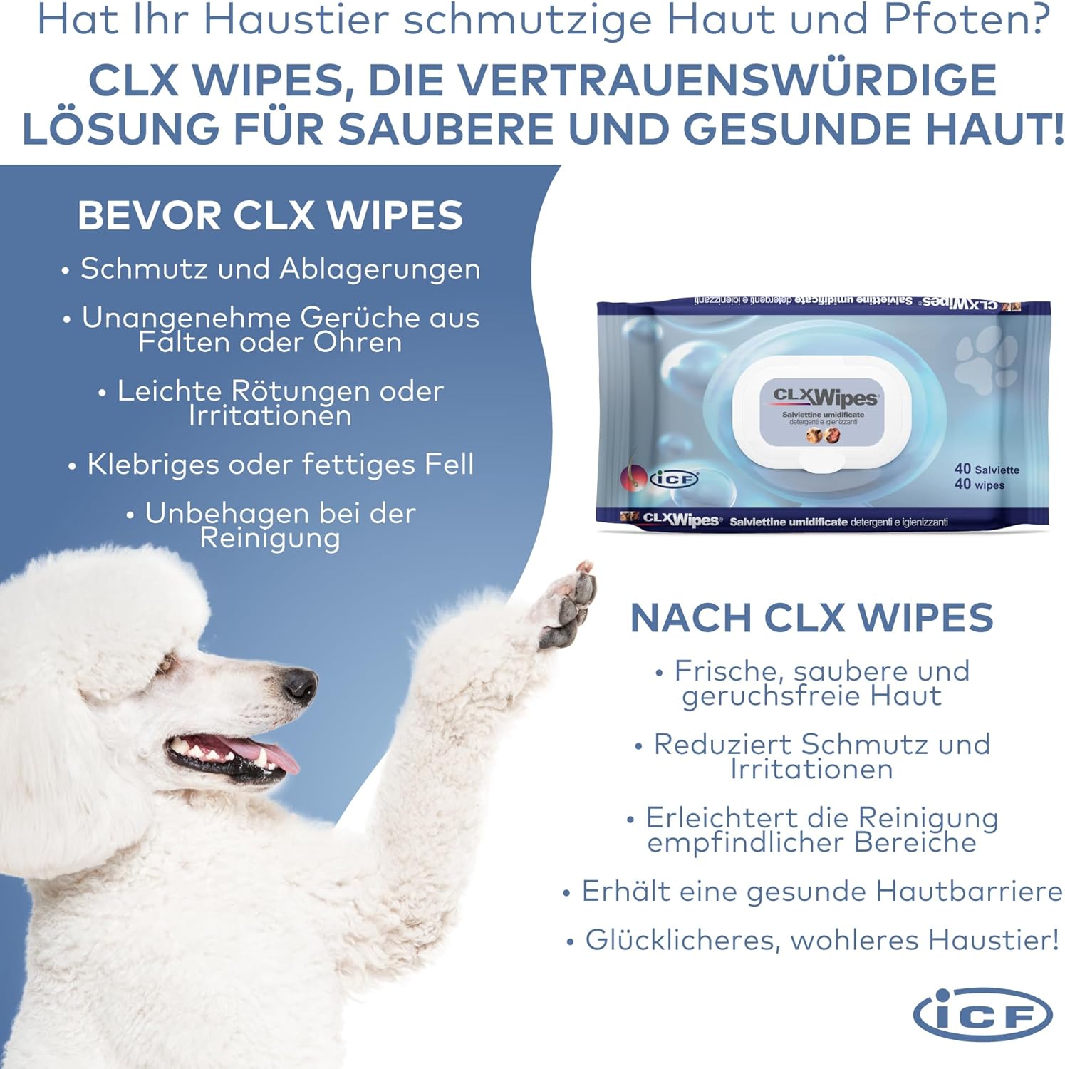 Die CLX Haustier-Tücher sind die perfekte Lösung für schnelle, sanfte und gründliche Hygiene zwischendurch. Egal ob nach einem Spaziergang, zwischen den Bädern oder für Haustiere, die zu Schmutz oder Gerüchen neigen – diese Tücher reinigen schonend, entfernen überschüssige Feuchtigkeit, reduzieren unangenehme Gerüche und hinterlassen ein angenehm frisches Gefühl.