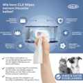 Speziell entwickelt für empfindliche Bereiche wie Pfoten, Hautfalten, Ohren und Gesicht, eignen sich die CLX Tücher ideal für Hunde, Katzen und sogar Kleintiere. Die hautfreundliche Formel pflegt sanft und sorgt für eine saubere, wohltuend gepflegte Hautoberfläche.