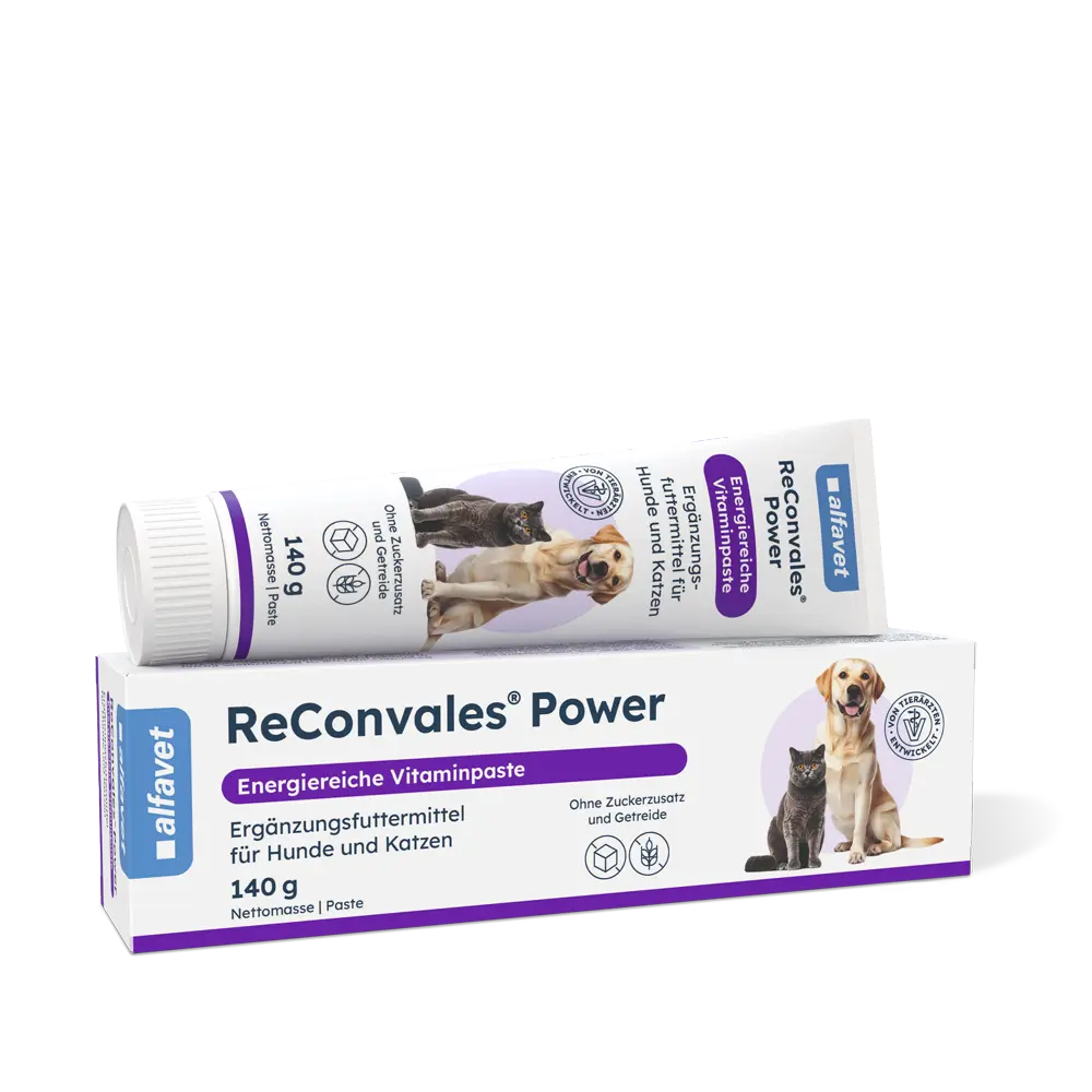 ReConvales® Power ist eine hochkalorische, wohlschmeckende Vitaminpaste für Hunde und Katzen, die gezielt zur Unterstützung bei Untergewicht, Appetitmangel und erhöhtem Energiebedarf eingesetzt wird. Die energiereiche Paste liefert konzentrierte Vitamine, Mineralstoffe und Spurenelemente und eignet sich ideal für geschwächte Tiere in der Rekonvaleszenz oder bei unzureichender Futteraufnahme.